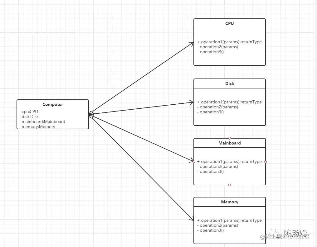 聚合关系:聚合关系是关联关系的一种,是强的关联关系,可以理解为一个整体必须需要哪些个体,比如一台电脑必须要有CPU、硬盘、主板、内存等,所以理解成聚合关系就是电脑类必须要关联CPU类、硬盘类、主板类、内存类等必须的类,从而保证电脑整体的完整性。因此这里聚合关系与关联关系的区别在于对于整体性与个体的判断,在关联关系中所涉及的类都是平等的,但是在聚合关系中涉及的类不是同一层次的,其中一个代表整体,其它的代表个体。