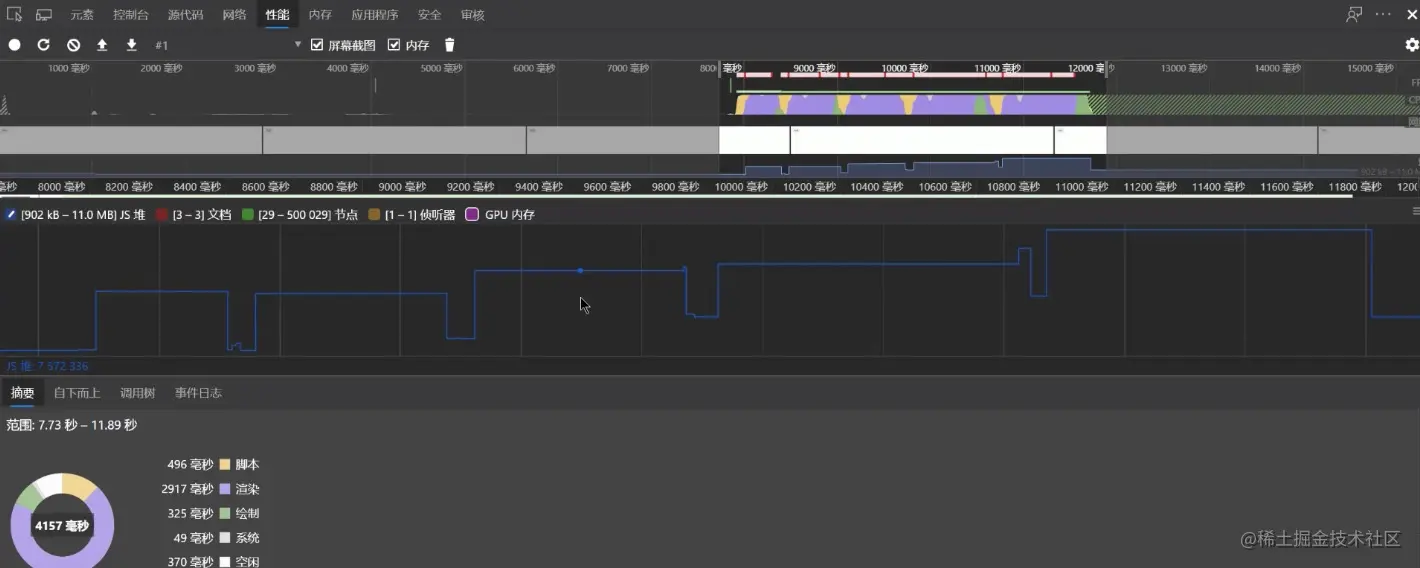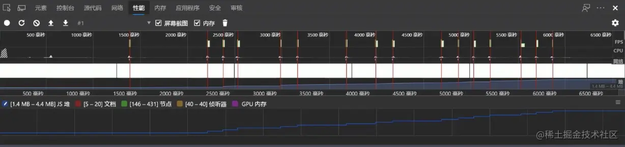 随着近些年硬件技术的不断发展,同时高级编程语言当中也都自带了 GC 机制。所以这样一些变化,就让开发者不需要特别注意内存空间使用的情况下也能够去正常的完成相应的功能开发。为什么在这里还要重提内存管理呢?下面就通过一段极简单的代码进行说明:这里 fn 函数在调用的时候会向内存尽可能多的申请一片比较大的空间。然后在执行这个函数过程中其实从语法上来说,它是不存在任何类型的问题的。但是当我们用一个相应的性能检测工具在这个脚本执行过程中对它的内存进行监控的时候,会发现它的内存变化就跟当前图示中所看到的蓝色线条一样。它是持续升高的,在这个过程当中并没有看到回落。这代表着内存泄露,如果说在写代码的时候不够了解内存管理的一些机制,从而就会编写出一些不容易察觉到的内存问题性代码。像这种代码多了以后给程序带来的,可能就是一些意想不到的 BUG 。所以掌握内存的管理,还是非常有必要的。