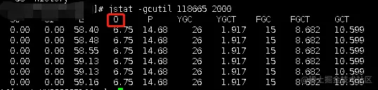 使用命令jstat -gcutil pid 2000,监控堆内存的垃圾回收情况,发现老年代一直在暴涨