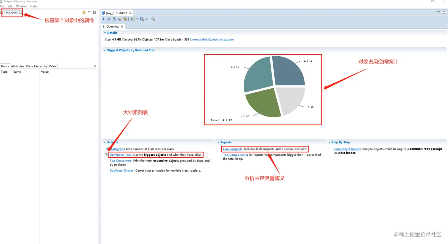 然后使用MemoryAnalyzer工具对dump日志进行分析: