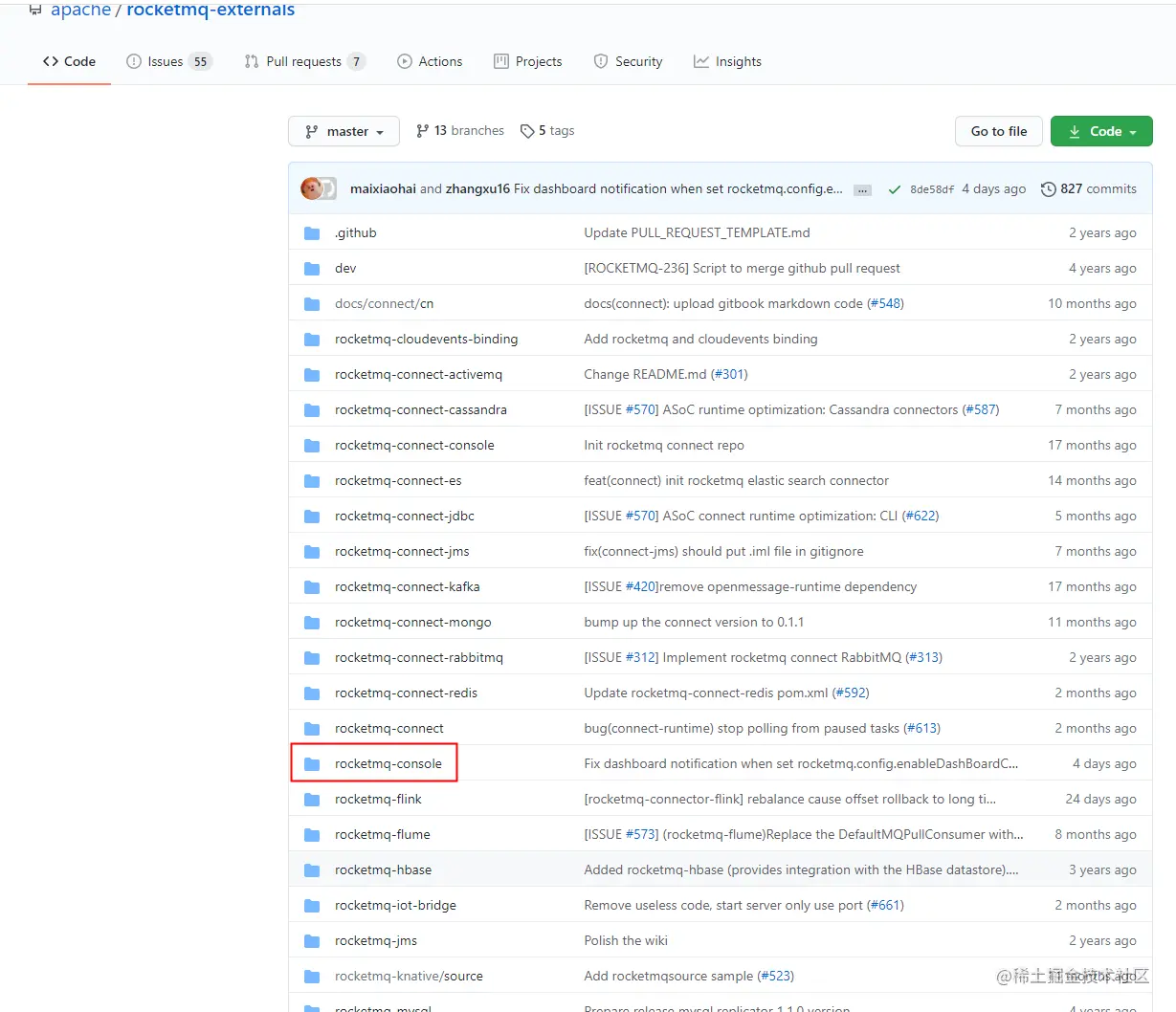 // 在git上下载并解压安装包,地址为:https://github.com/apache/rocketmq/tags