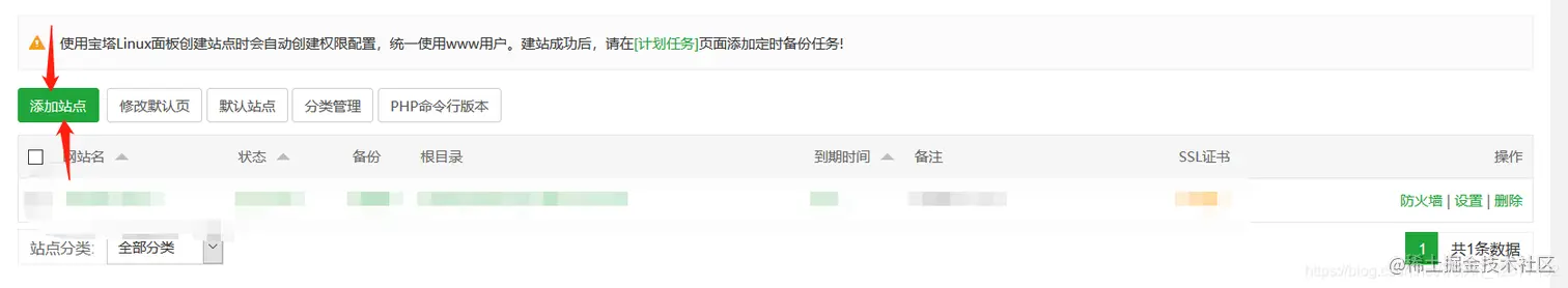 选择添加站点填写域名 (注:PHP版本选择56)