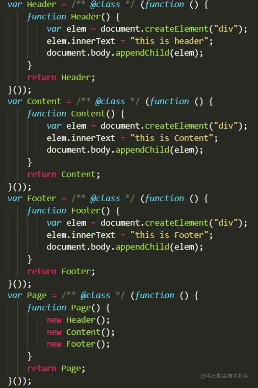 然后我们tsc进行编译,再打开page.js可以看到只有Home被声明成全局变量了,其它都是Home的方法