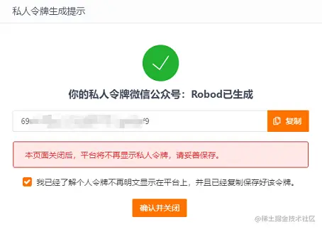 注意,token只显示一次,请及时保存下来,没保存就只能重新生成了。