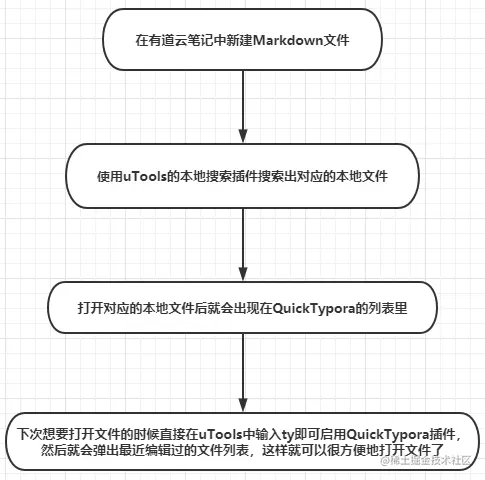 本地搜索是基于Everything的,但要比直接使用它要舒服;QuickTypora可以打开最近使用Typora编辑的Markdown文件,所以使用流程就是👇