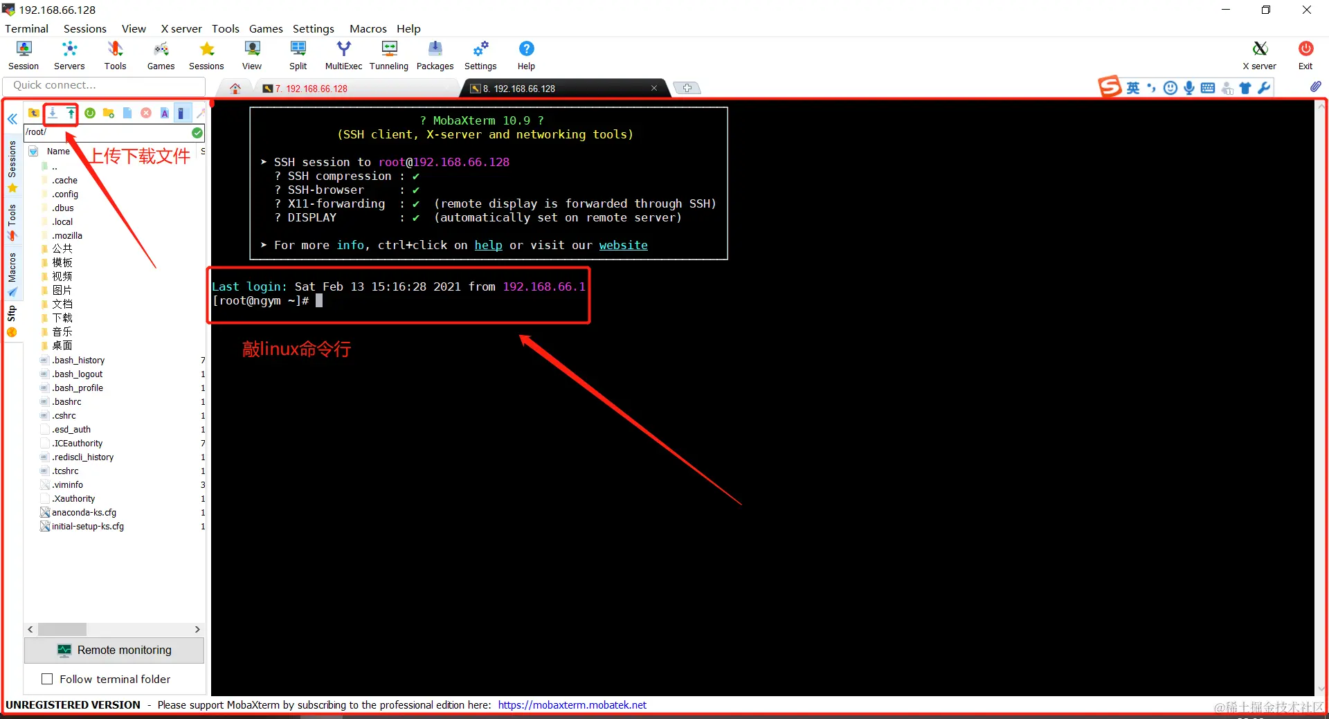 - 推荐理由:既能使用命令行的形式,又能可视化上传下载远程服务器文件