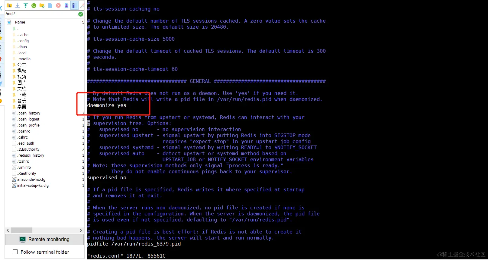 - 设置 redis 后台启动,将 no 改为 yes