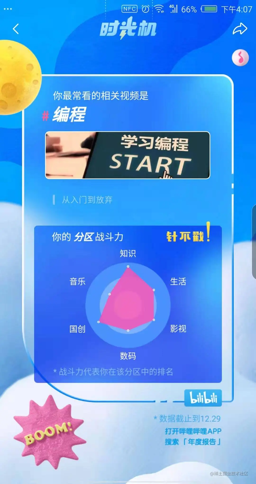 读书区的小圆脸Paprika、suelence、江湖举人等,不知道看什么书的时候可以看看他们的视频,一堆书单就来了,可惜自己太懒了没读多少书,曾经加的一个读书群呢也因为有两个月没写书评,然后被无情的踢出了群聊;