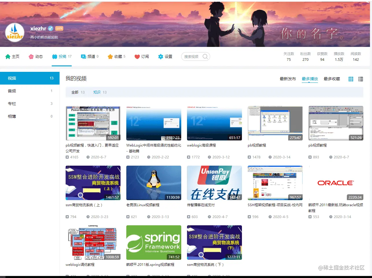 这一年下来呢也看了不少他们的视频,学到了不少新知识。