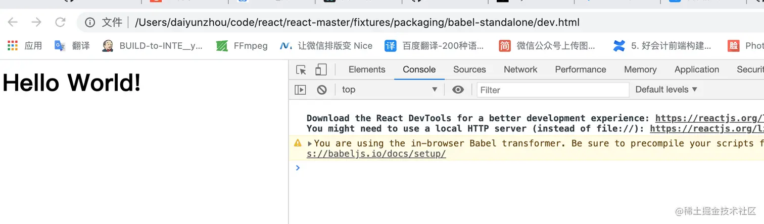 根据中文网提到的相关操作,可以将react,react-dom打包,直接通过dev.html加载运行,为了后期方便学习,我直接将用到的文件复制到新的空项目中,github地址:github.com/dai12544737…