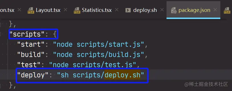2.或者在package.json里面创建一个命令 "deploy":"sh scripts/deploy.sh"