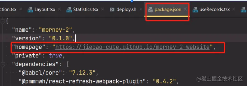 "homepage": "https://mywebsite.com/relativepath", 路径为github里面创建的项目
