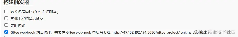 触发构建器选择 Gitee webHook