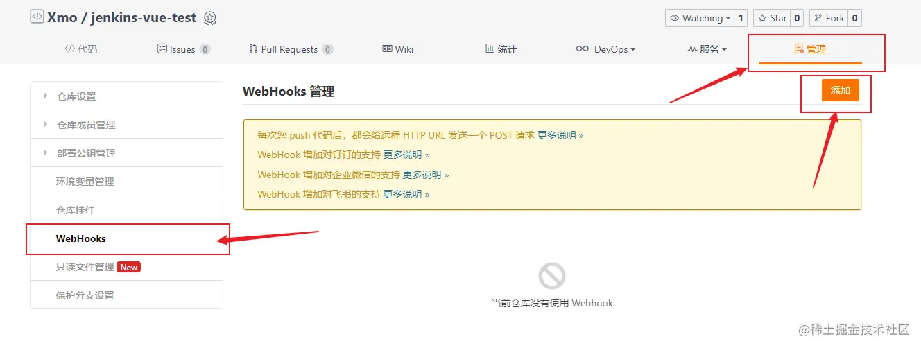 在 Gitee 项目中添加一个 WebHook
