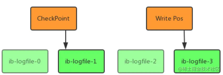- checkpoint 是当前要擦除的位置,也是往后推移并且循环的,擦除记录前要把记录更新到数据文件;