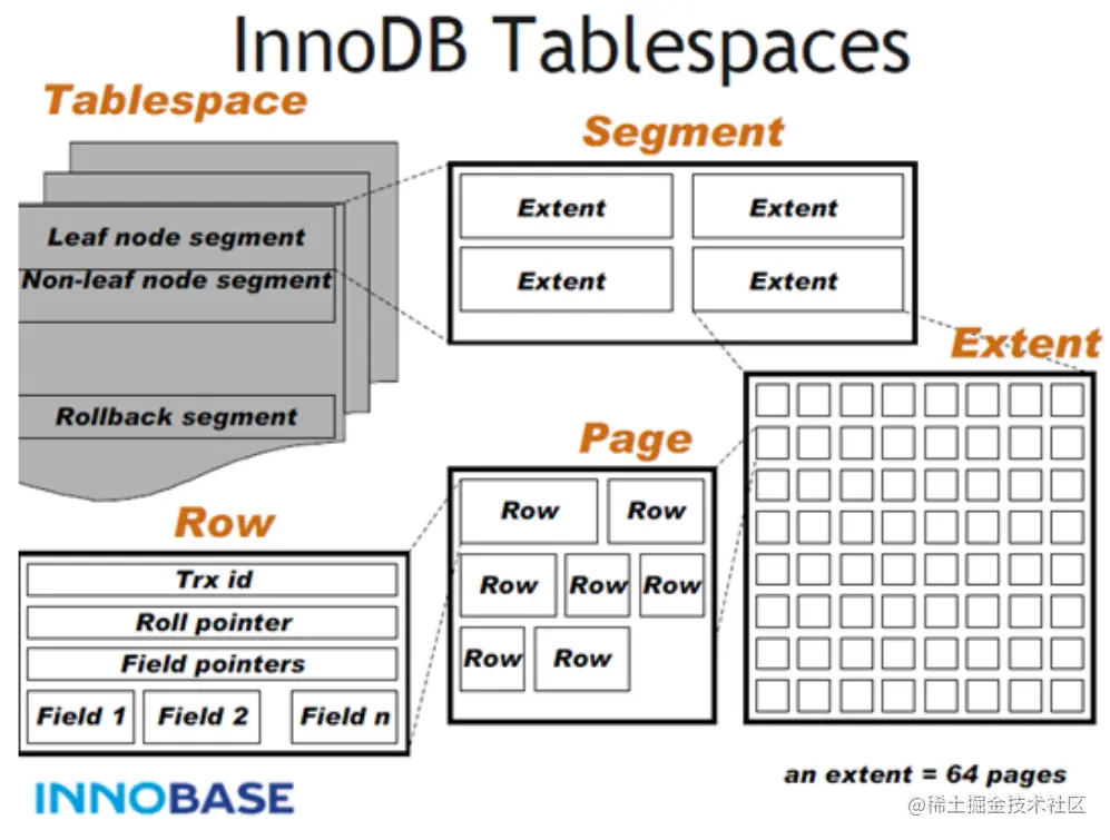 B树结构存储- 如果某些字段信息过长,无法存储在B树节点中,这时候会被单独分配空间,此时被称为溢出页,该字段被称为页外列