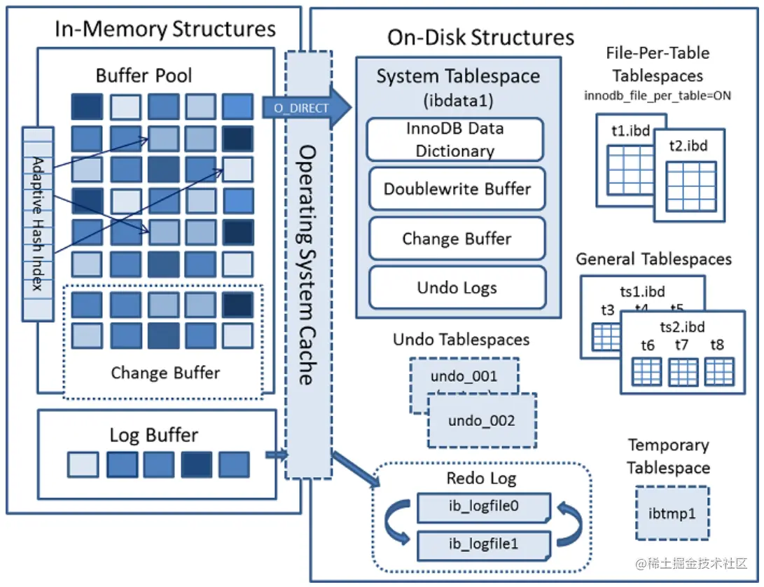 - ibdata1 文件:系统表空间数据文件,存储表元数据、Undo日志等 。