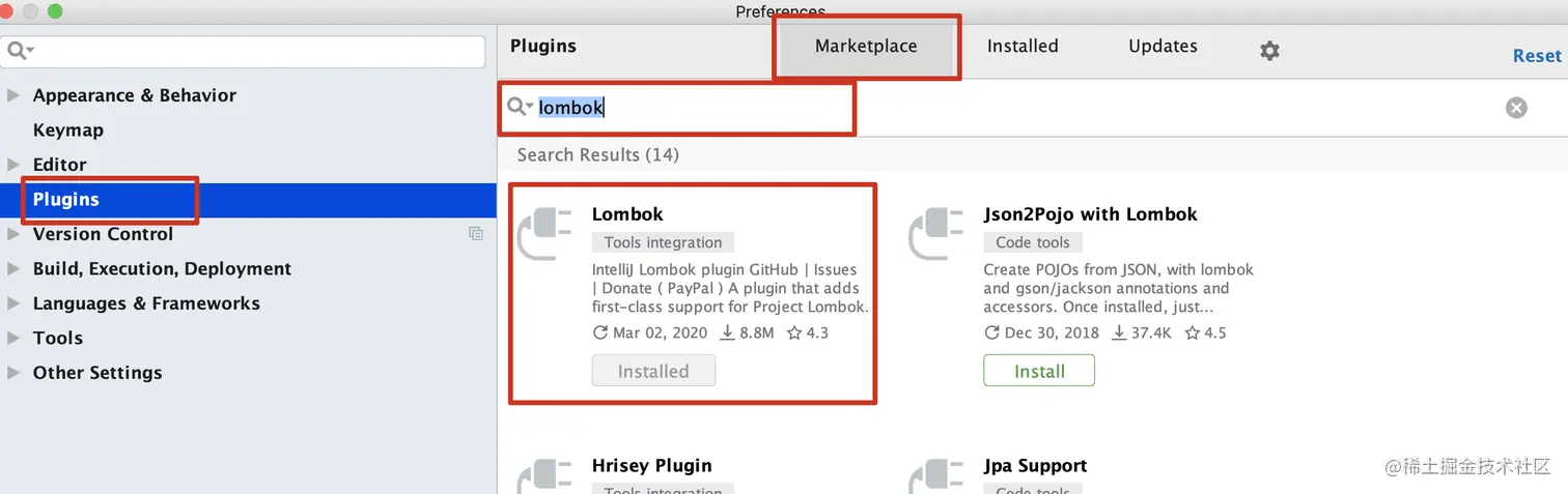 Preferences | Plugins --> 搜索lombok 下载安装 安装完成重启idea即可