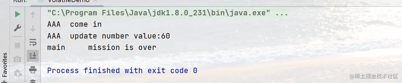 主线程也执行完毕了,说明volatile修饰的变量,是具备JVM轻量级同步机制的,能够感知其它线程的修改后的值。