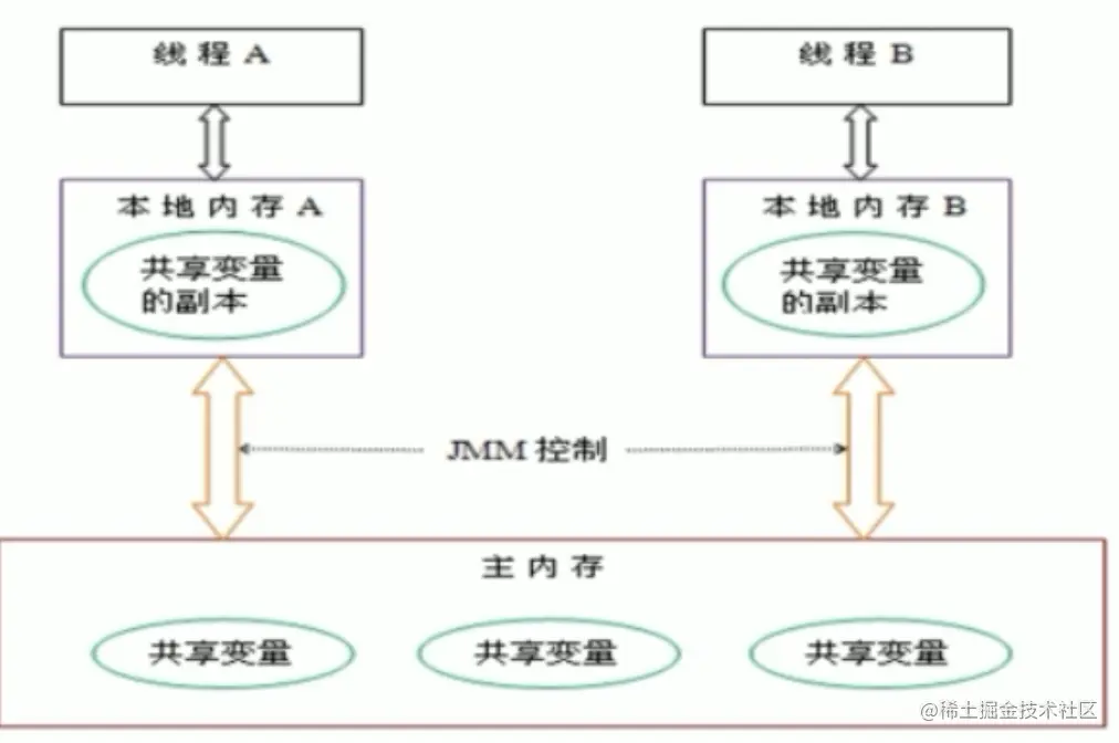 JMM是Java内存模型,也就是Java Memory Model,简称JMM,本身是一种抽象的概念,实际上并不存在,它描述的是一组规则或规范,通过这组规范定义了程序中各个变量(包括实例字段,静态字段和构成数组对象的元素)的访问方式