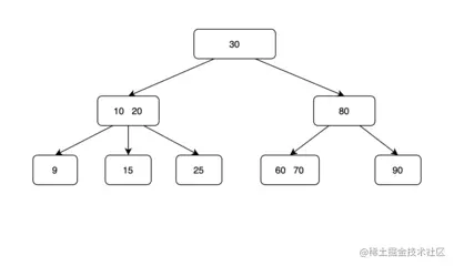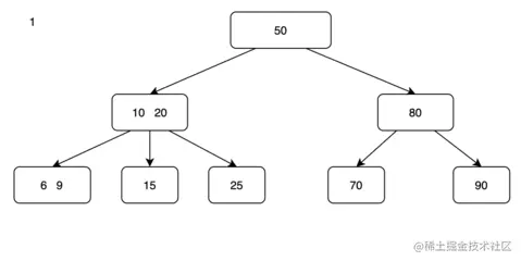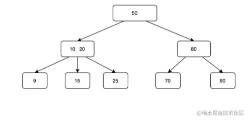 - 如果一个非叶子节点有 2 个 key,其必有 3 个子节点,左 key 大于左子节点,右 key 大于右子节点,中子节点大于左 key 并小于右 key。