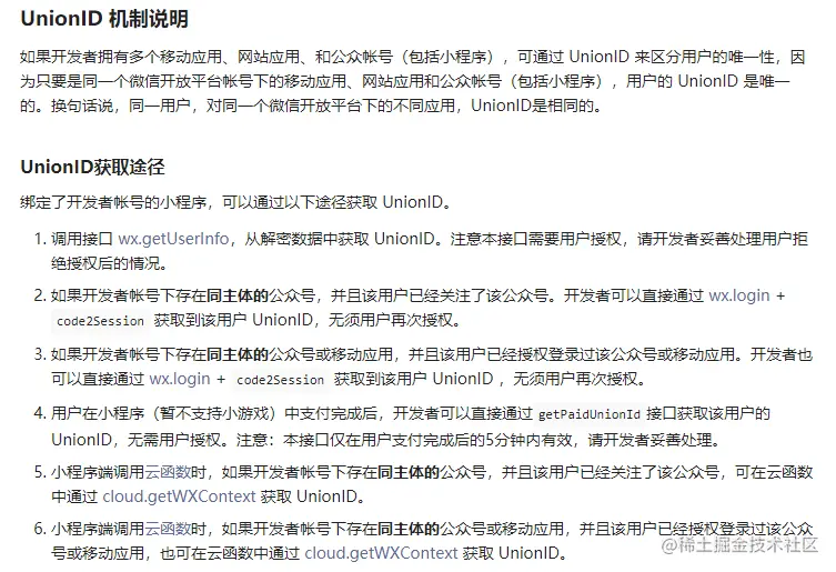 unionId是指用户在某个主体下的唯一标识,多个应用可以绑定统一主体,那unionId就是唯一的,获取的方法分几种情况