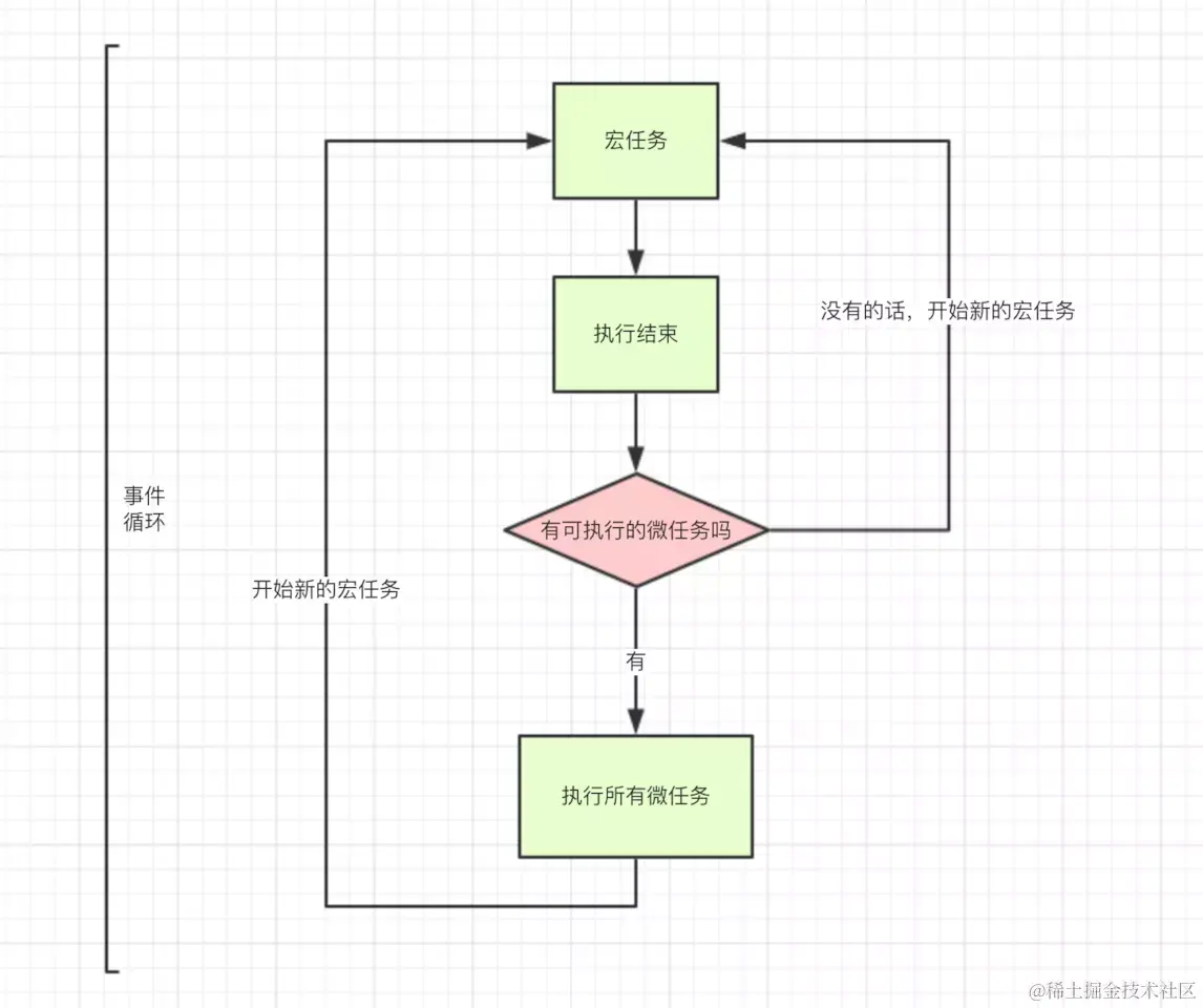 在同步代码执行完成后才回去检查是否有异步任务完成,并执行对应的回调,而微任务又会在宏任务之前执行。