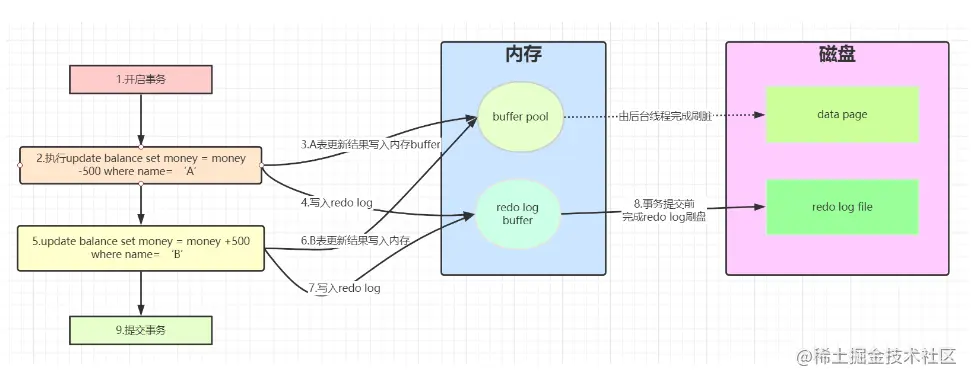 - 直接写磁盘是随机IO,写redolog是顺序IO,顺序IO比随机IO性能好。