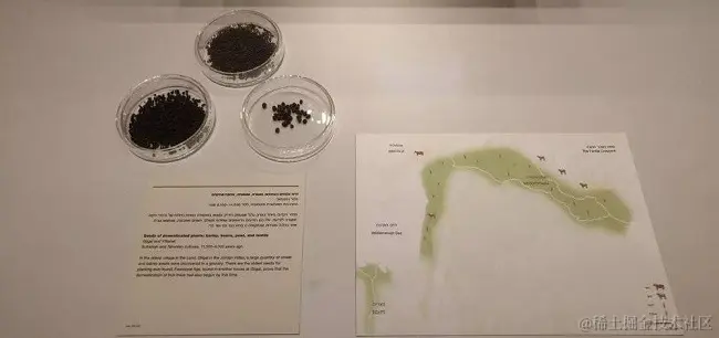 图示:以色列国家博物馆展示传统作物种子。这说明该地区早在两河文明孕育之初,就已经开始农作物的耕作。