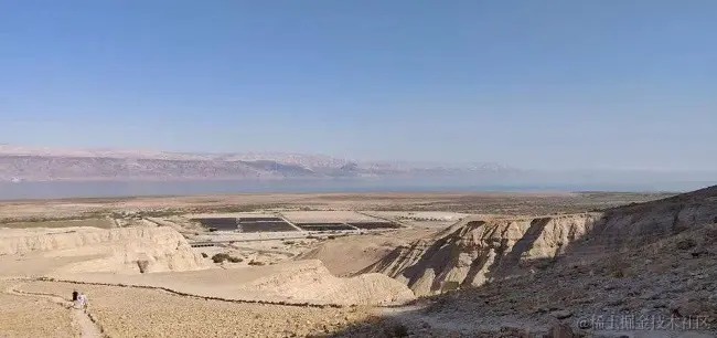 图示:马萨达(Masada)古战场国家公园位于朱迪亚沙漠(Judean Desert)的边缘。从希律王所修的北宫遗址望去,只能看到死海边缘那一整片无尽的荒芜。