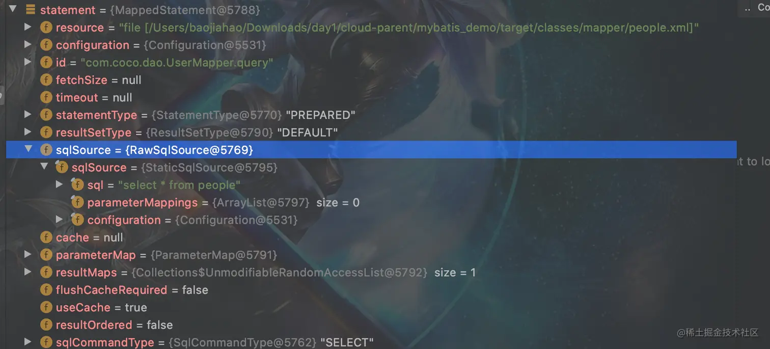 - SqlSource:这里面就封装了我们在xml配置文件中编写的SQL语句,大家在图中就可以看到了