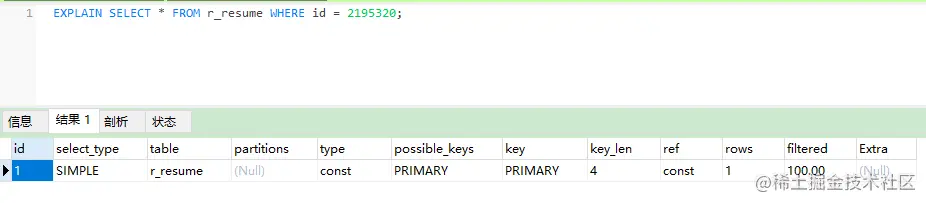 MySQL 提供了一个 EXPLAIN 命令,它可以对 SELECT 语句进行分析,并输出 SELECT 执行的详细信