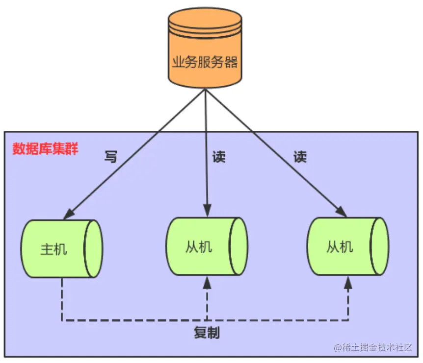 将数据库分为主从库,一个主库用于写数据,多个从库完成读数据的操作,主从库之间通过主从复制机制进行数据的同步