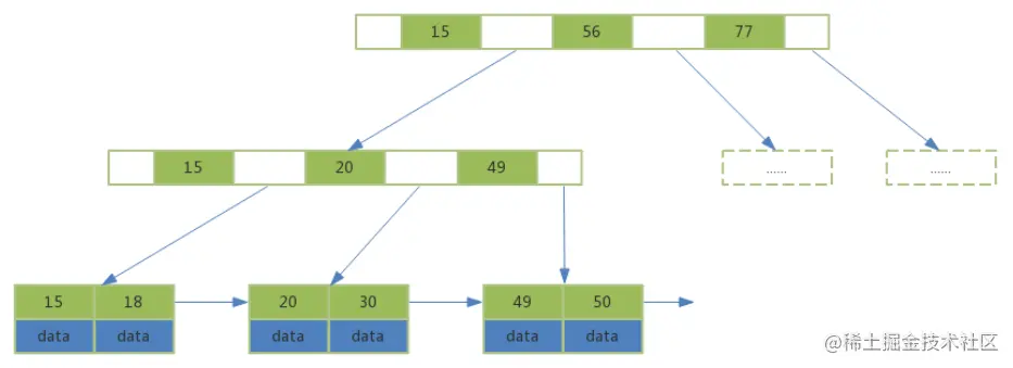 - 非叶子节点不存储data数据,只存储索引值,这样便于存储更多的索引值