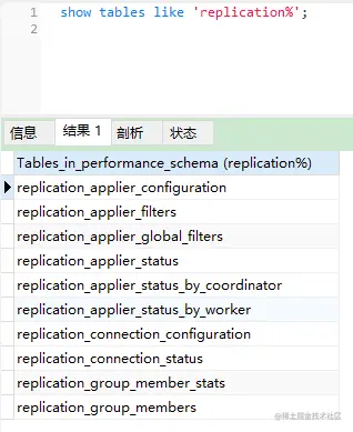 mysql> show tables like 'replication%';