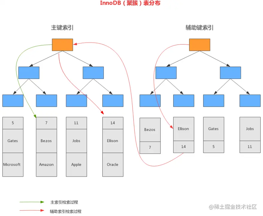 - 主键索引、辅助索引(二级索引)
