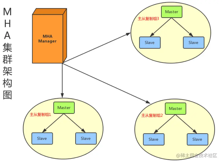 - MHA 组成:MHA Manager(管理节点)和MHA Node(数据节点)。