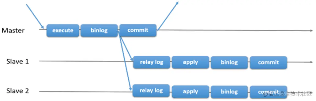 - 从库读取中继日志信息在从库中进行Replay,更新从库数据信息
