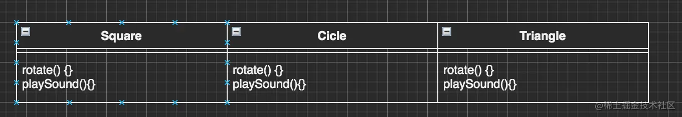 我们发现这三个类都有共同的类方法 rotate()、playSound(),可以再抽象出一个父类出来: