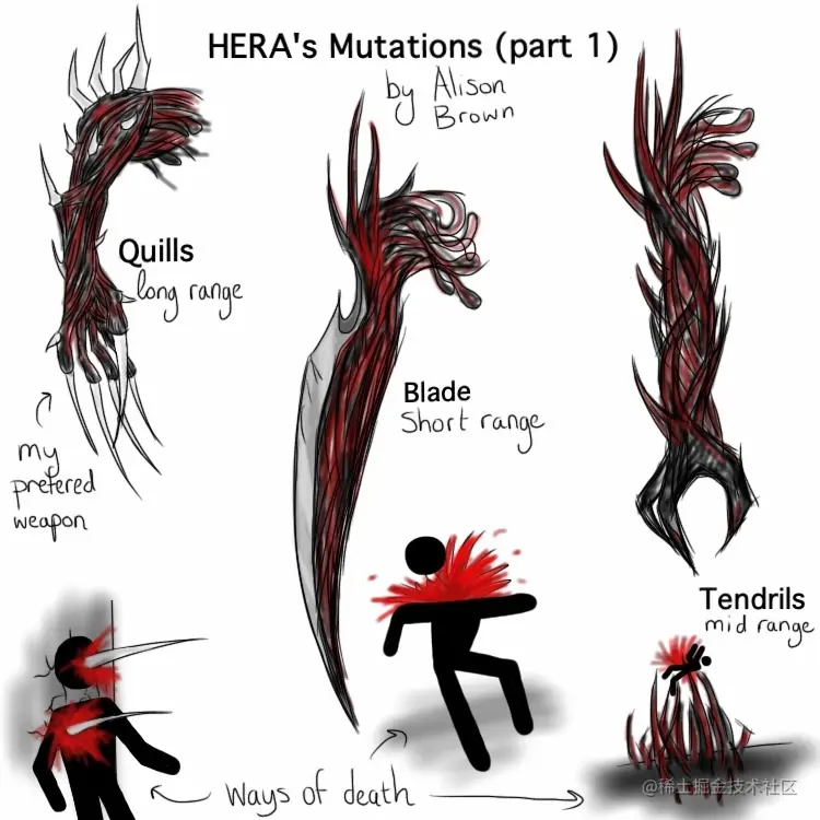 在文学、电影、游戏创作等领域,除了故事情节外,人物主角也是由原型一步步改良而来。比如虐杀原型 游戏中的主角纸面原型如下,除了设定好人物的外表外,更重要的是要设定他的行为功能: