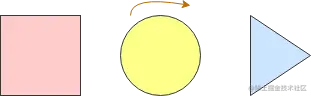 举个例子,假设我们需要在屏幕上画出四方形、圆形与三角形,在用户点选图形时,图形需要按顺时钟方向旋转 360 度并根据形状的不同播放不同的 AIF 音效文件,如下图所示。