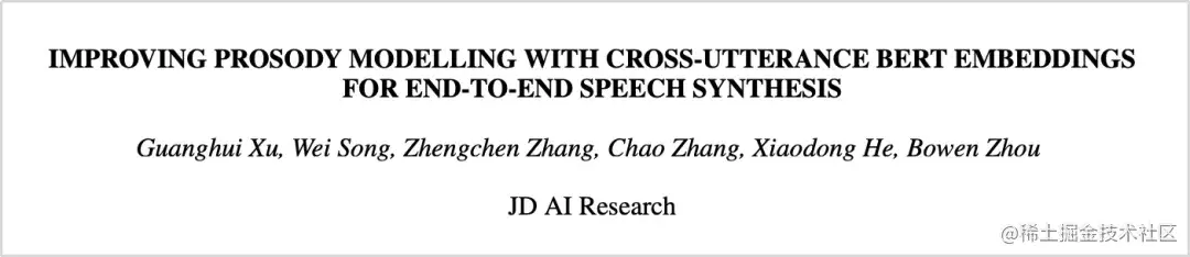 京东科技集团入选论文《Improving Prosody Modelling with Cross-Utterance Bert Embeddings for End-to-End Speech Synthesis基于跨句信息的端到端语音合成韵律建模》采用了 目前主流的BERT模型来提取待合成文本的跨句特征向量,然后利用该上下文向量改善基于端到端的语音合成模型的韵律效果。
