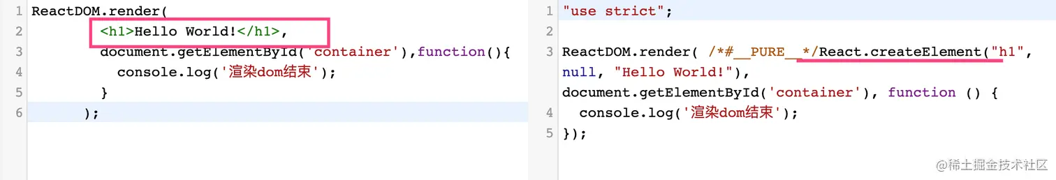 可以看到parentComponent,container,forceHydrate,callback都可以理解,但是children的输入内容和<h1>Hello World!</h1>不太一样啊,是在哪里处理的?