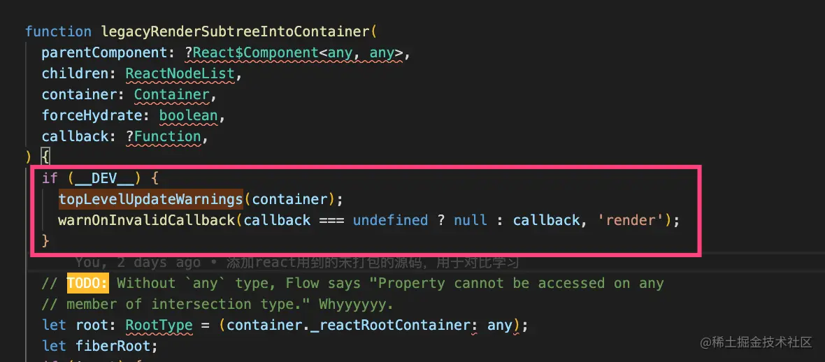 warnOnInvalidCallback: 接收两个参数,第一个是回调方法,第二个是一个标志函数的名字,这里render应该就是在报错的时候告诉我们是在render的方法中出现的错误。warnOnInvalidCallback$1(callback === undefined ? null : callback, 'render');
