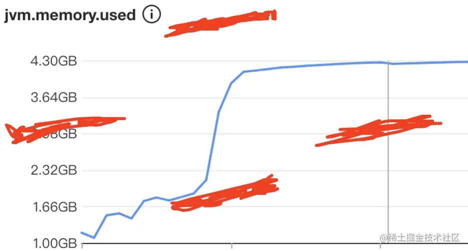 1、从内部的指标分析软件可以看出,调用这个接口是及其耗内存,且gc的时间和次数都有大的增长;