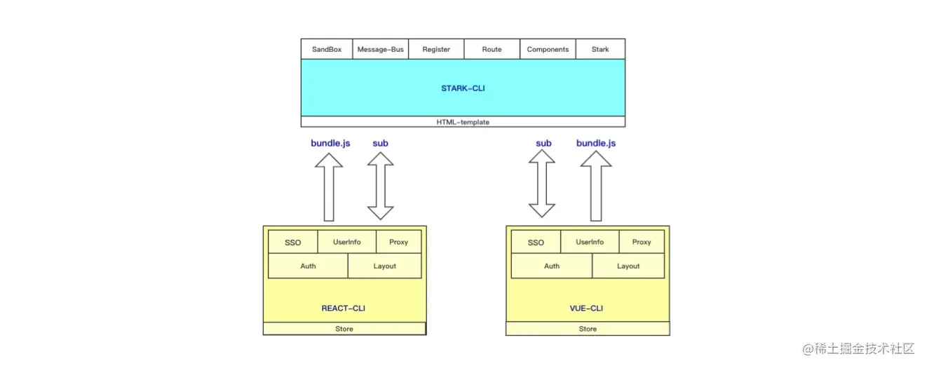 一直到现在除了那个“特定”的需求之外,没有遇到过再需要微前端的业务需求了。但是微前端的思想是非常值得借鉴的。这里放上我们的架构图:
