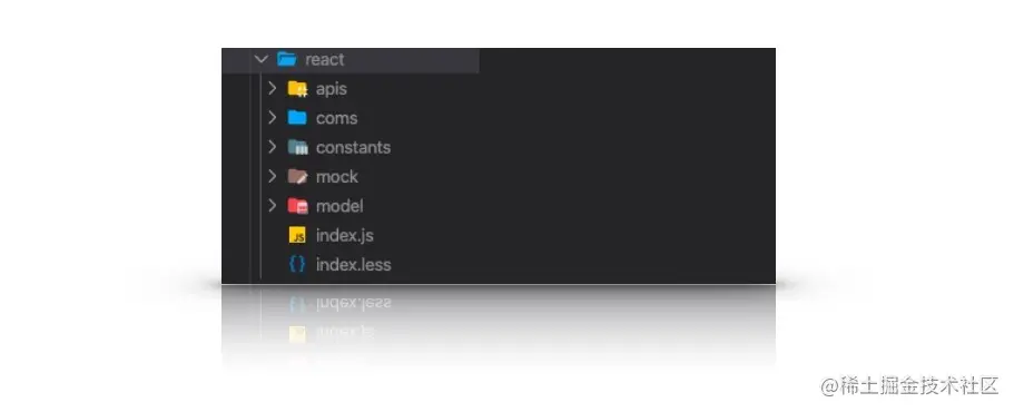 物料正是优雅解决这种问题的方案。物料模板可以生成一套含结构化目录的模板,如图展示的是我们团队React物料其中的一种