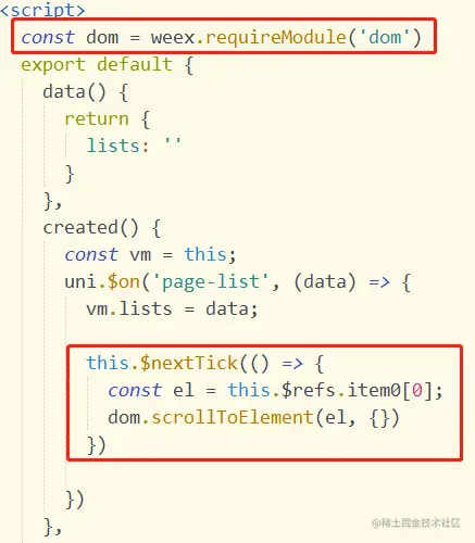 nvue中,list会记录滚动条的位置,如何每次清空位置返回顶部 逍遥派掌门人 2021-02-18 418 阅读1分钟 nvue中不支持使用uni.pageScrollTo,可以使用dom.scrollToElement来操作,如: 1.可以通过给标签加ref属性,就可以在js中利用ref去引用它,从而达到操作该dom元素