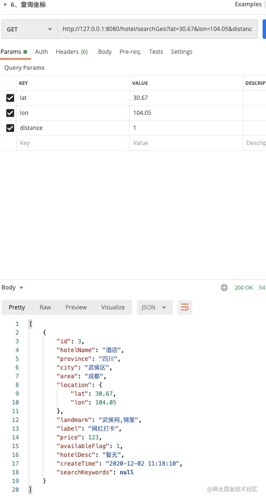 5、根据坐标从Elasticsearch查询酒店列表。